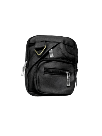 Fabricada en piel carnaza color negro, con un compartimento principal, cuatro compartimentos secundarios y un compartimento oculto. Con cintas ajustables en muslo y cintura.